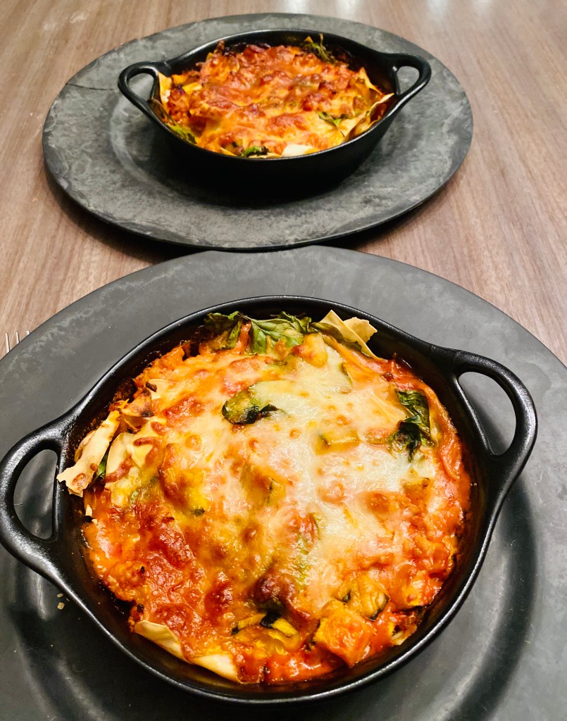 Laisser mijoter. Quand les courgettes sont cuites, goûter et rectifier l’assaisonnement. Préchauffer le four à 180C* et commencer à monter les plats.